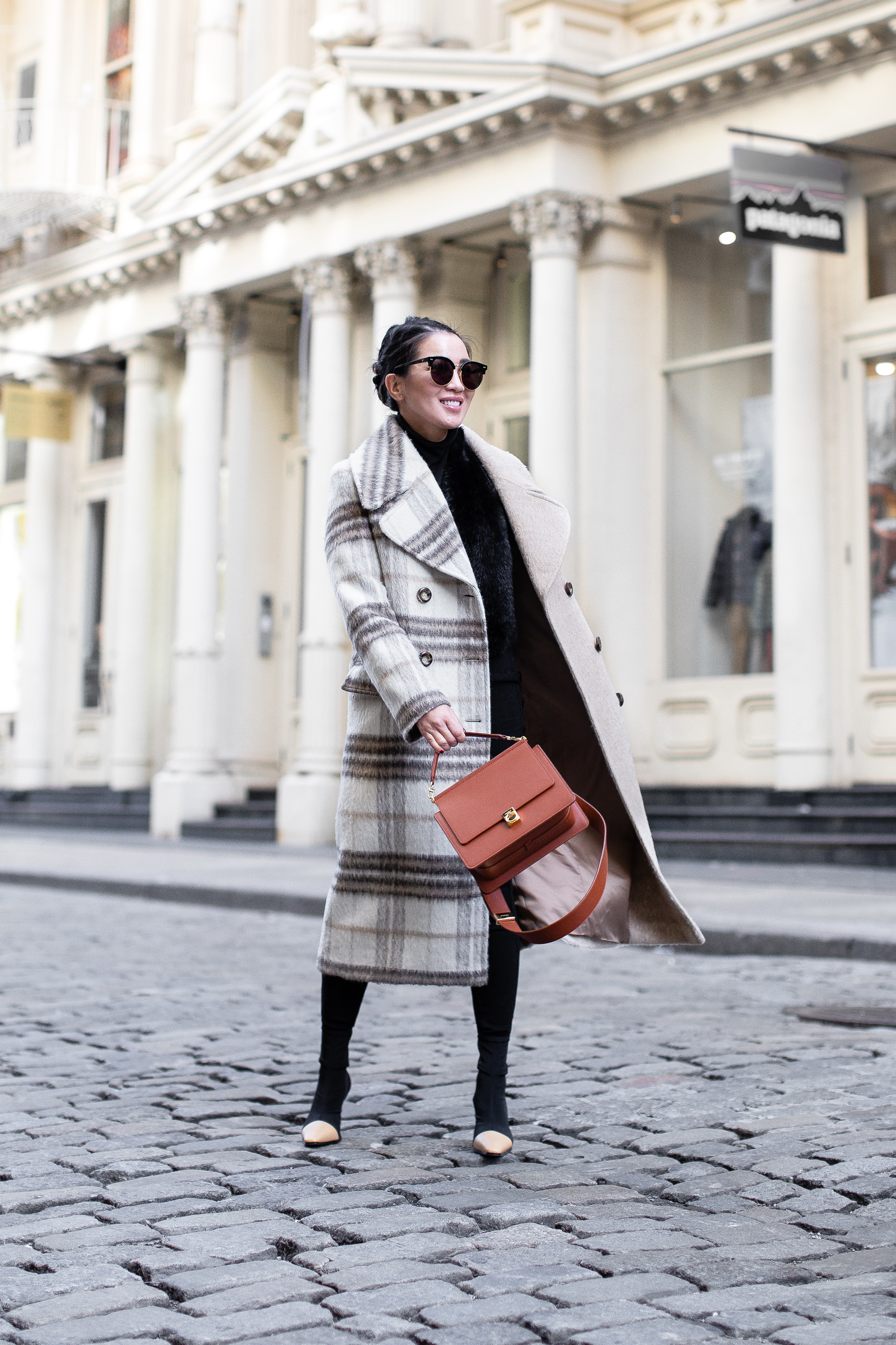 Before we get into the holiday gifting, this outfit shares a few similarities to the curated list. Pairing unique elements with unique pieces, I went for a mix-texture look. This pattern play coat and hourglass shaped boots are so chic! A statement piece all around and beautiful for winter.