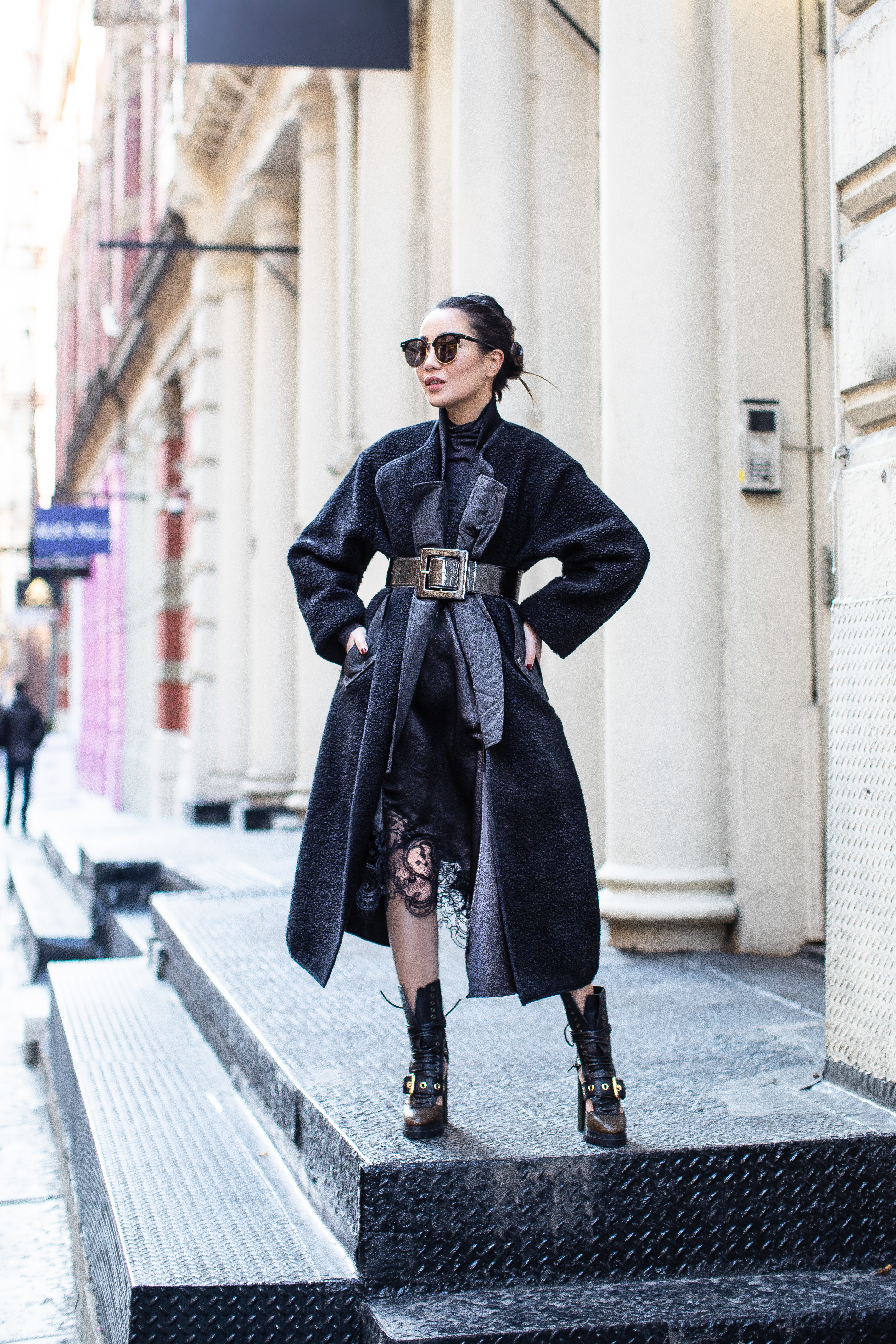 If a bomber jacket and a wool coat had a baby, it would be this layered boucle coat. It’s so unique! A mix of super warmth and fun details, this coat can be dressed up or down. Dressing up by combining it with a lace skirt and boots or down with a comfy hoodie and sneakers. After snapping these photos, I went straight to work in this outfit and got so many complements on this look!