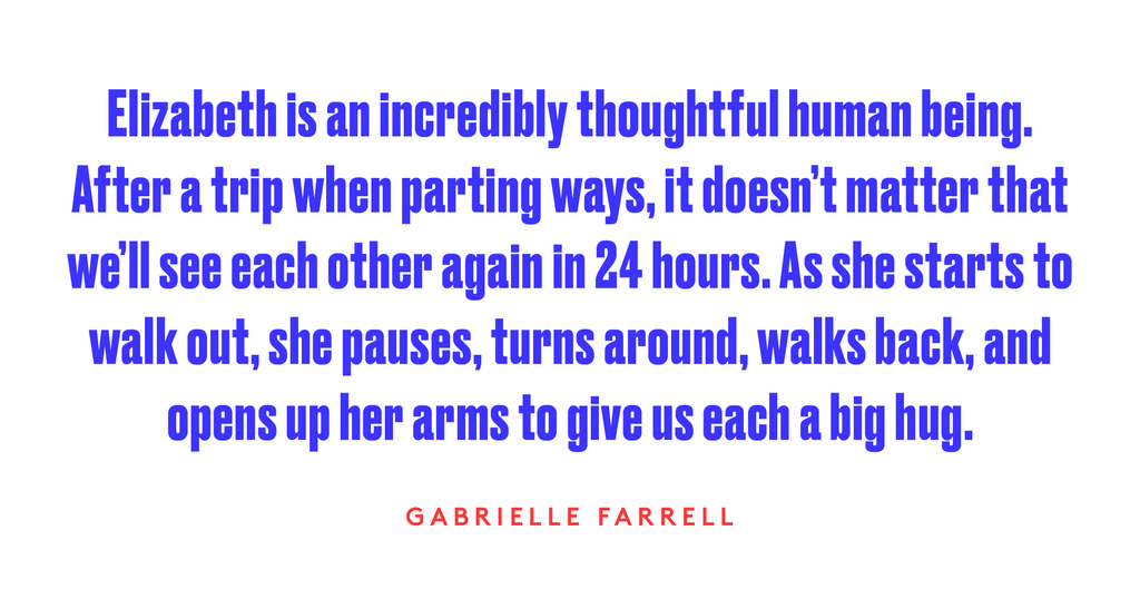 4:15 p.m. — We arrive at The New York Times for another interview. National political correspondent Alex Burns meets us in the lobby, and a camera is on Elizabeth from the moment she walks in the door, so I have to try my best to get the best audio of her interactions while also staying out of the shot. Sometimes, if the videographer is running, I have to pick up my pace and jog, too. These moments keep me light on my feet.