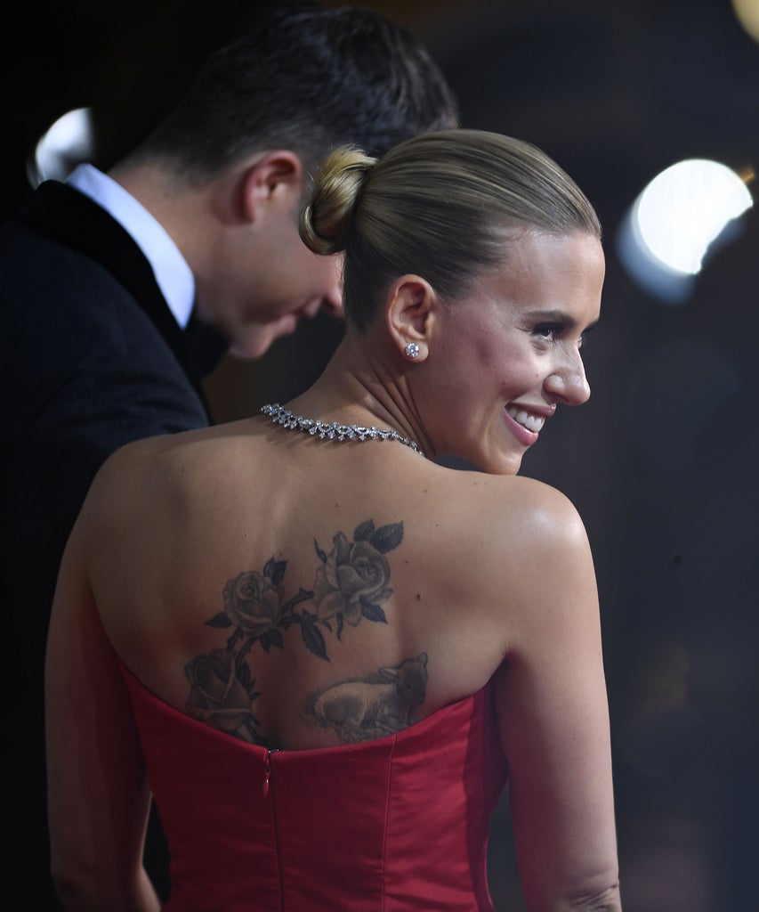 Scarlett Johansson’s Golden Globes Look Puts Her Back Tattoo On Full Display