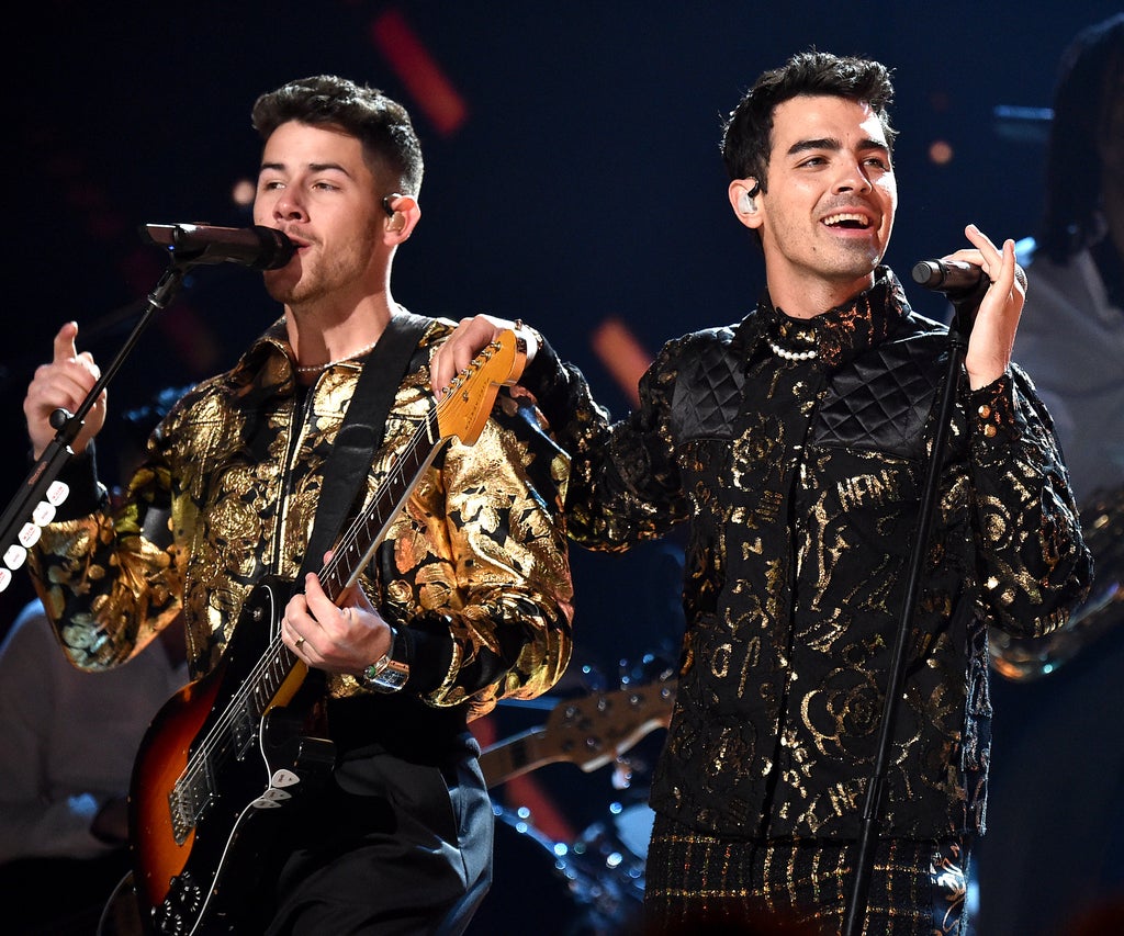 On Sunday night, we noticed that members of another aughts boy band were taking the former One Direction singer’s preferred jewelry item for a spin. During their performance of “Five More Minutes” at the Grammys, both Joe and Nick Jonas of the Jonas Brothers were seen sporting matching white pearl necklaces with their gold and black onstage looks. Coincidence? We think not.