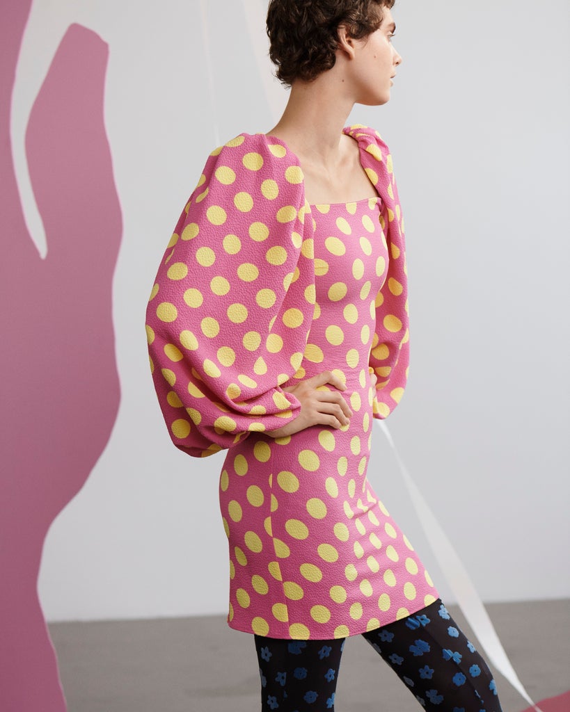 But dance isn’t the only common factor between the two collections. Just as in her FW19 collection, SS20 contains a sustainable message. “The vibrant Polka Dot and Hearts stories across the Mainline are created entirely from recycled polyester,” the brand explains. “The Ina Dress, featuring hand-sewn applique fabric flowers, combines GOTS Certified Silk Organza, Tencel Lyocell and Lenzing Ecovero Viscose with intricate embroidering techniques.”