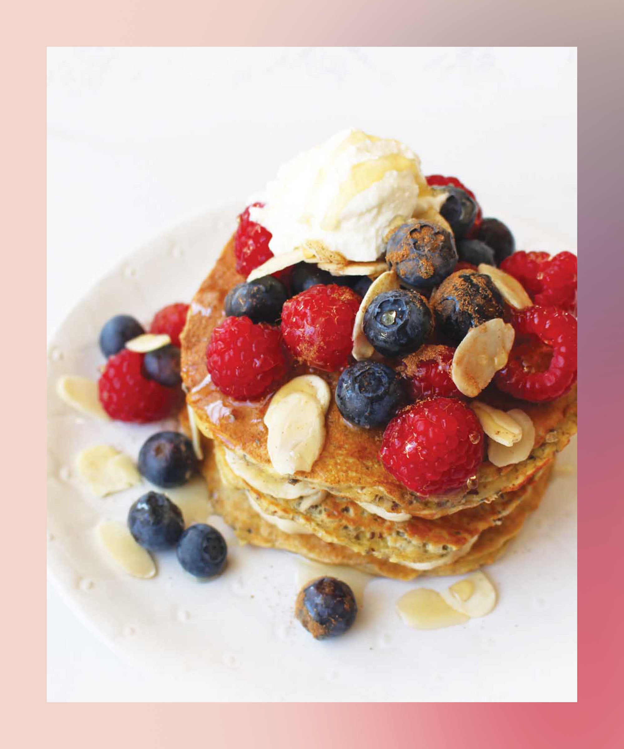 3) In batches, pour the batter into a pan until you’ve reached your desired pancake size. Cook one side until you see little bubbles starting to form. Flip carefully and cook the other side until the pancakes are golden and cooked through.