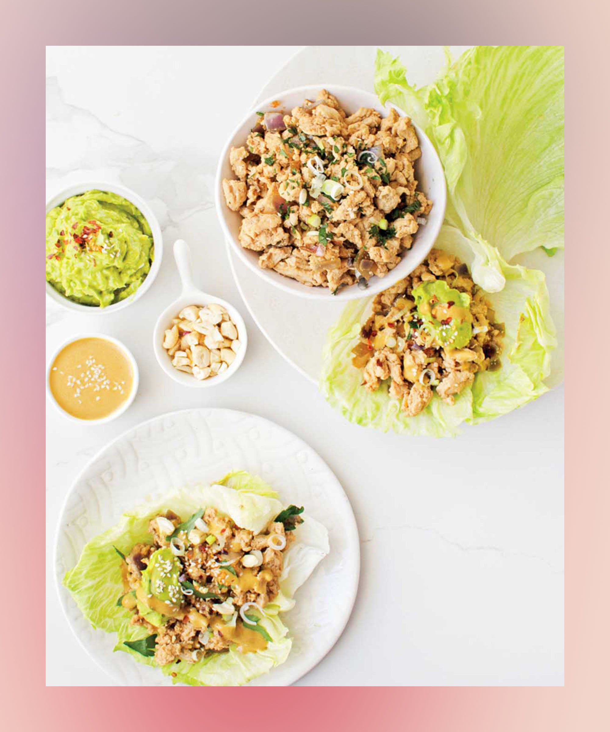 5) Prepare the lettuce cups by chopping off the stem of the lettuce and carefully pulling each lettuce cup away from the head. Repeat until you have 5 to 6 lettuce cups.