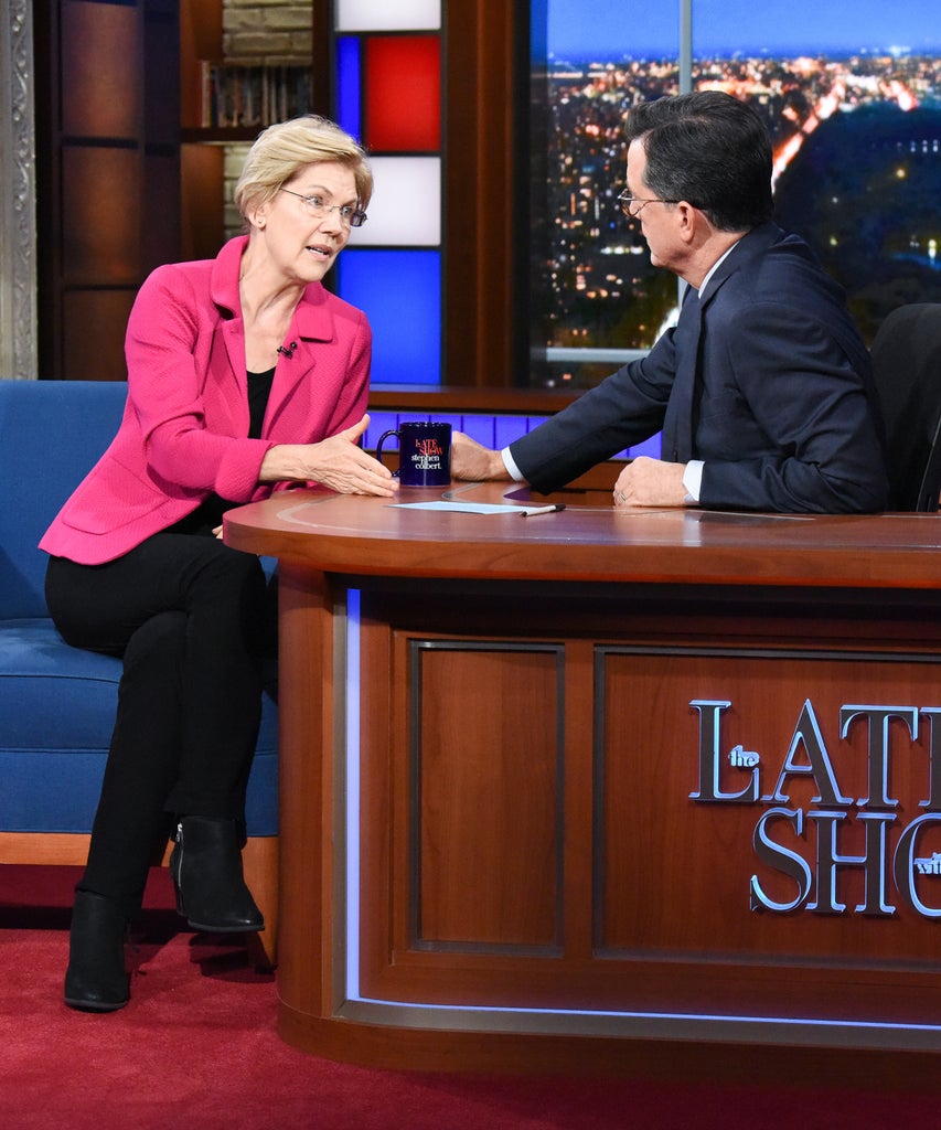 Elizabeth Warren is still collecting the tears of billionaires, perhaps her biggest adversaries in the 2020 presidential race. During the Wednesday night episode of Stephen Colbert’s Late Show, the Massachusetts senator made an appearance ahead of the South Carolina primary, during which they enjoyed some of the state’s classic, but rich, cuisine — so rich, Warren might want to tax it, Colbert joked.