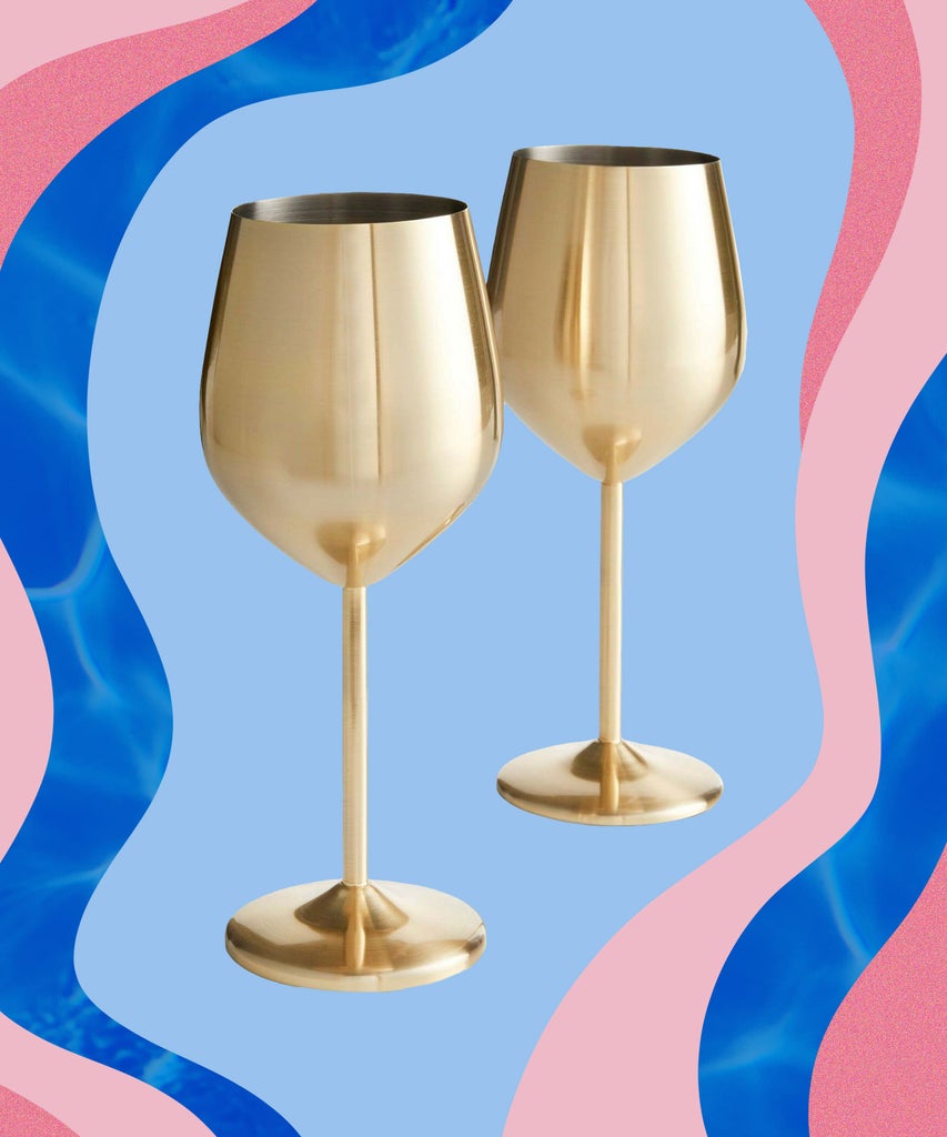 If you spent this past weekend wedged into a corner of your couch, overcome with what can only be described as a mix of terror and glee, then chances are you (along with the rest of us) binge-watched all of Love Is Blind. For those that haven’t given in to this new Netflix series, it’s tough to describe in comparative terms (try to imagine The Bachelor franchise meets Married at First Sight meets Real World meets a psychological thriller). But, we’re not here to summarize the series OR give away any spoilers. We’re here with an important product PSA about those baffling gold wine goblets the couples keep drinking from: you can buy them on Amazon.