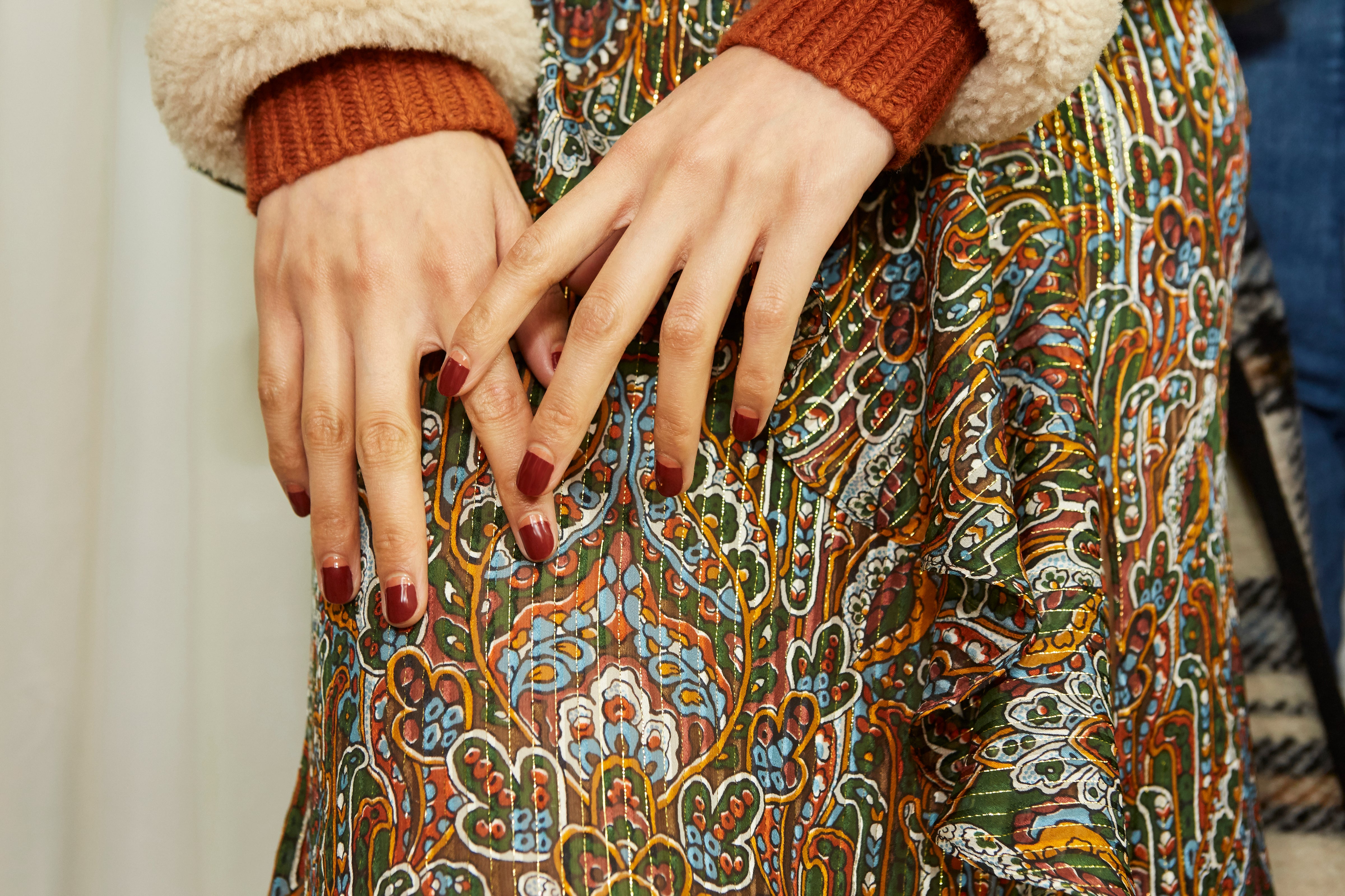 Veronica Beard proved that burnt orange-y reds are not exclusive to fall, but will always pair well with a paisley print or shearling jacket.Courtesy of Essie