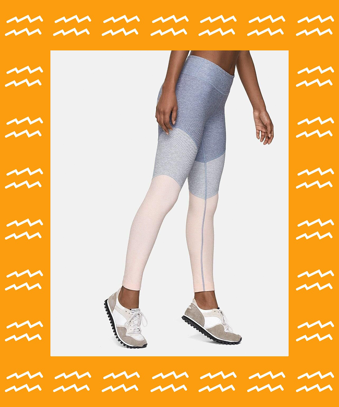 "Aquarius likes self-focus and deep spiritual connection," the Bakers say. "We would recommend a guided meditation or yoga class to get their spiritual focus restored." In sartorial speak though, that could translate to pastel color-block that matches Aquarius's "airy vibe." Outdoor Voices' bestselling Springs leggings offer moderate compression but are still comfy enough to sit on a meditation cushion or chill out in Downward Dog.