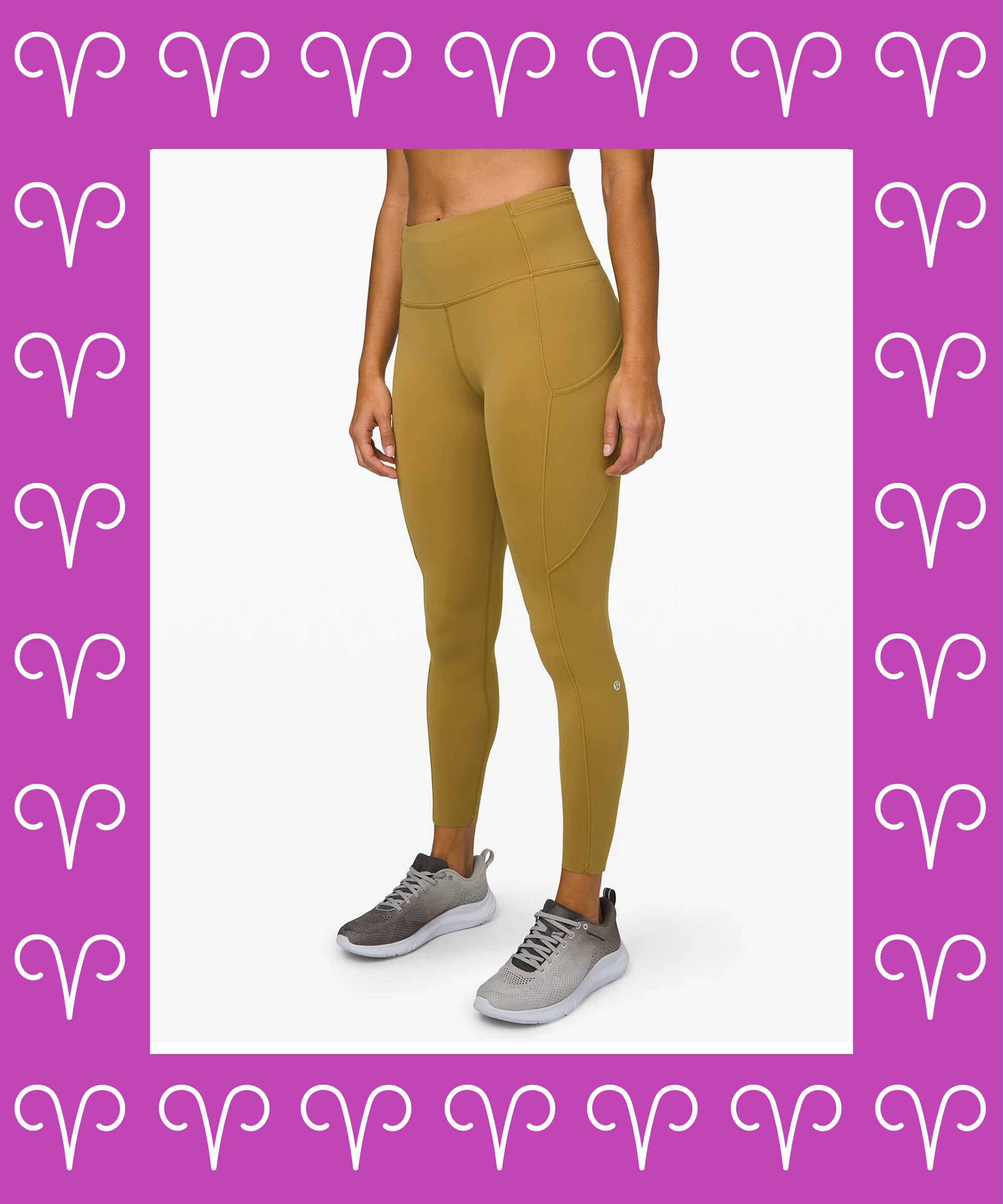 "Aries are enthusiastic about their workout and looking to do their very best," Baker says. "We would recommend a suspension training class such as TRX or Crossfit." As for what to wear? Buttery-soft, performance Lululemon leggings (especially in an optimistic goldenrod colorway) feel so right — and will keep you dry no matter how sweaty things get when you're doing the most.
