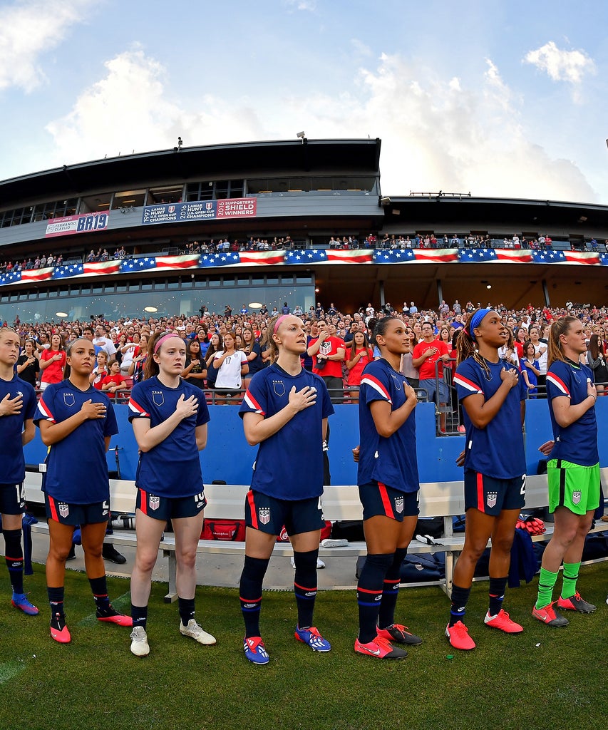 But, the USWNT was not having it, and they staged a protest before Wednesday’s She Believes Cup. The team took the field for the National Anthem wearing their warm-up jerseys inside out, effectively hiding the USSF crest. “We wanted to stand together as a team and make a statement on behalf of all women and girls that the Federation’s comments are unacceptable,” the players said in a statement provided to The Athletic’s Meg Linehan. “We love this sport and this country, and we cannot stand for this misogynistic treatment.”