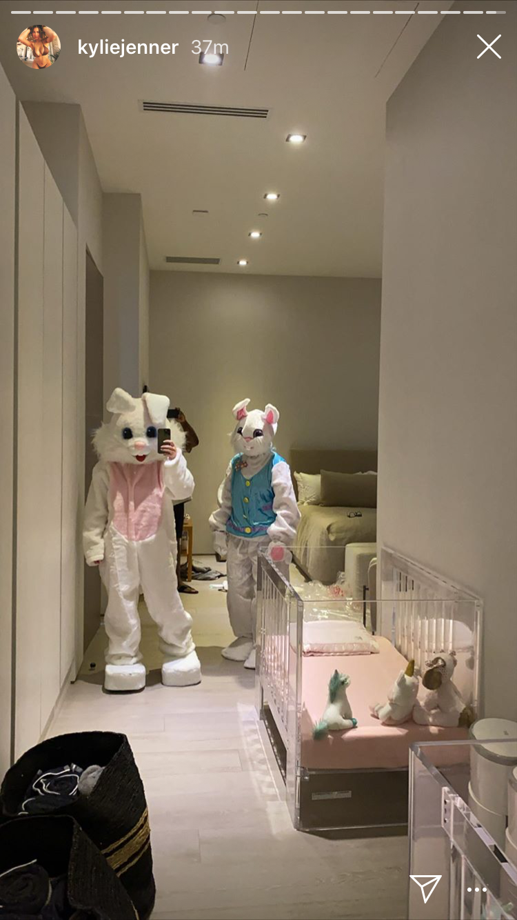 Kylie Jenner is going all out on her Easter celebrations. Given her penchant for throwing elaborate parties, we are not surprised. It appears that she has been getting really into baking, bunny-themed decorations, and hopping out in a bunny suit? Her Instagram stories show a mirror selfie with Jenner dressed as none other than the Easter bunny itself.