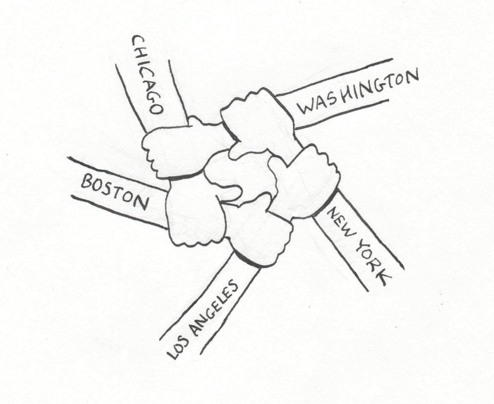 "My parents, ages 93 and 94, are in Chicago, as is one sister. Another sister and her husband (both law professors at Harvard) and their daughter are in Cambridge. My husband and I are in McLean VA outside of Washington DC and our daughter is in LA with her fiancé and son is in Brooklyn with his girlfriend. We have lawyers, teachers, writers, and a Hollywood costume designer. My husband designed this photo for the title page of the Haggadah.