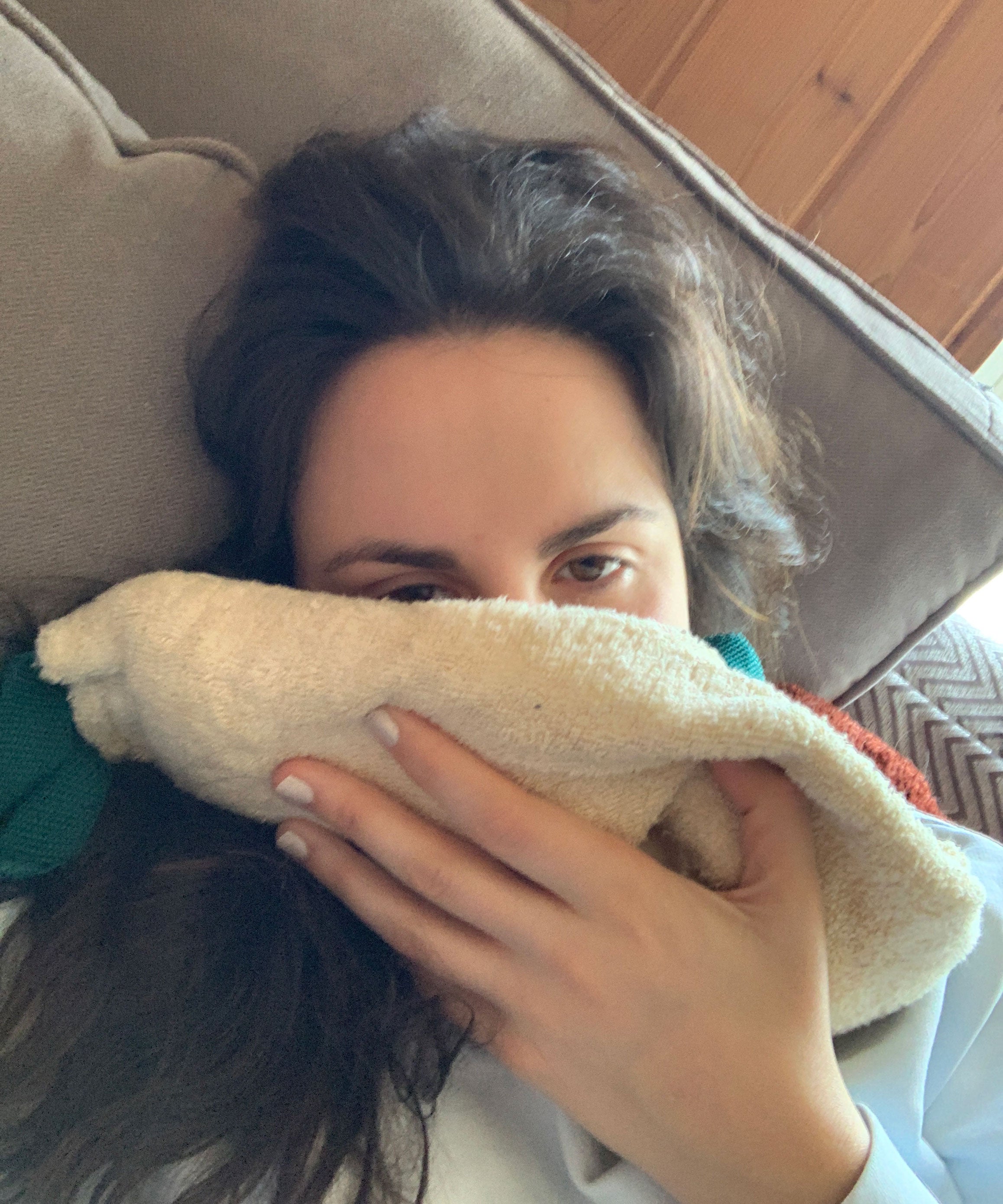 I went home to my parents in Michigan before I realized I was sick (I lost my job in the midst of all this, and I went home before shelter-in-place measures were put in place). So, I got tested at a drive-through testing center at a hospital there. It took six hours. I was exhausted and so sick, and my poor mom waited with me the entire time. We just had gloves and masks on, trying to entertain each other. Someone in the line ordered pizza. When I finally got to talk to someone, it was very quick, in and out. The swab up the nose was excruciating because my sinuses were already so swollen. I cried and accused this young guy of puncturing my brain. I didn't get much advice, because at this point there were only like 50 confirmed cases in Michigan, and the line was about 90 cars, so I think the healthcare workers were just assuming everyone was overreacting.