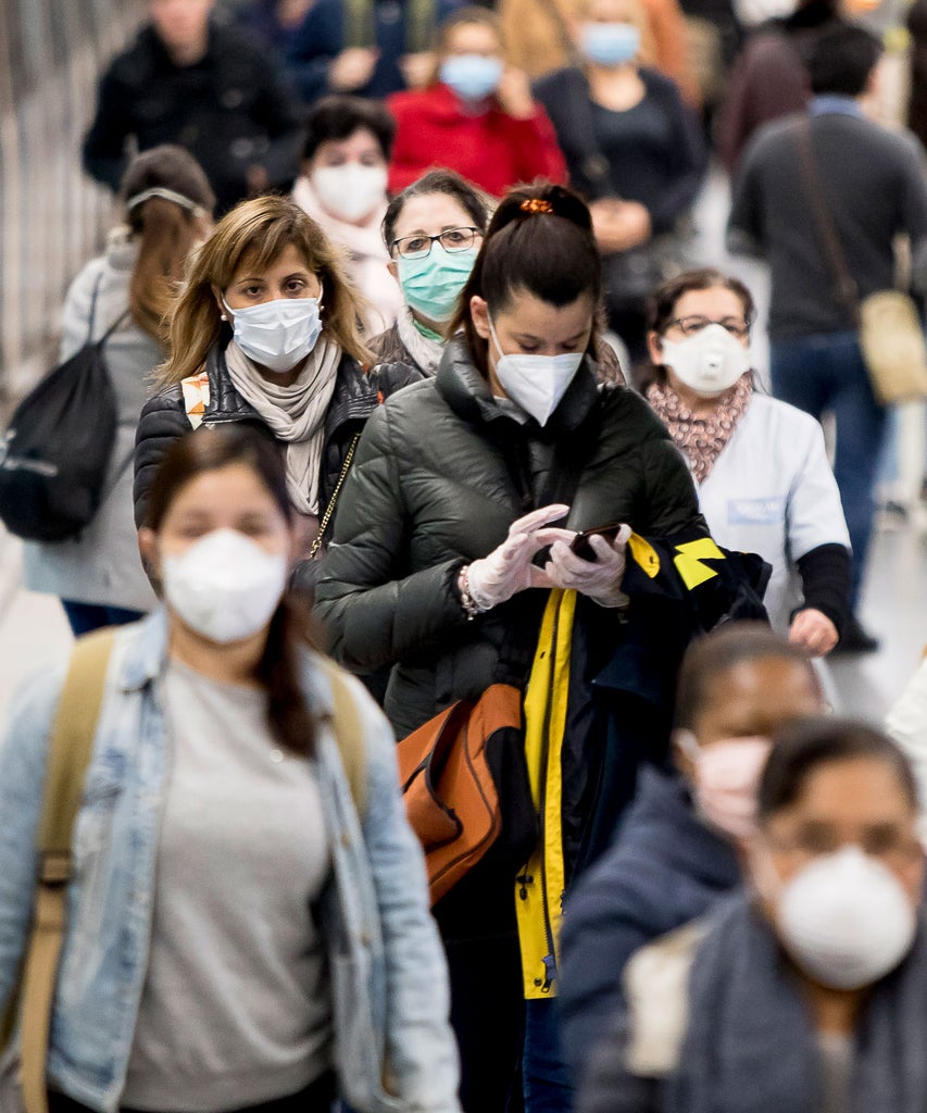 So, what exactly are respiratory air droplets? Basically, the little beads of water, mucus, and saliva that are produced when someone coughs, sneezes, or even talks — and if that person has been infected with the virus, then those droplets contain SARS-CoV-2, the virus that causes COVID-19, too. These droplets can linger in the air for anywhere from a fraction of a second to minutes — and they can travel up to 26 feet, according to a Journal of The American Medical Association article published on March 26.