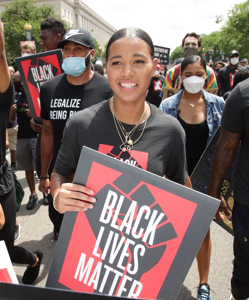 That’s exactly what Cloud hopes will happen. In her Players’ Tribune piece, Cloud said that her wish is that seeing athletes speak out about injustice will inspire others to do the same. Elena Delle Donne, Cloud’s Mystics teammate, posted an Instagram story about Floyd’s killing and Cloud pointed out that “[Delle Donne is] the MVP of our league, one of the most famous white basketball players alive, and… even that ONE post on its own, it took just a little bit of the weight off my shoulders. It made me feel just a little less powerless in this world. It also laid down the gauntlet, I think, for other athletes. And if it didn’t? Then I hope this article does.”