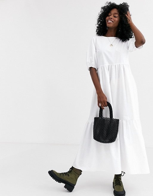 ASOS DESIGN ASOS DESIGN tiered cotton poplin smock midi dress, $, available at ASOS