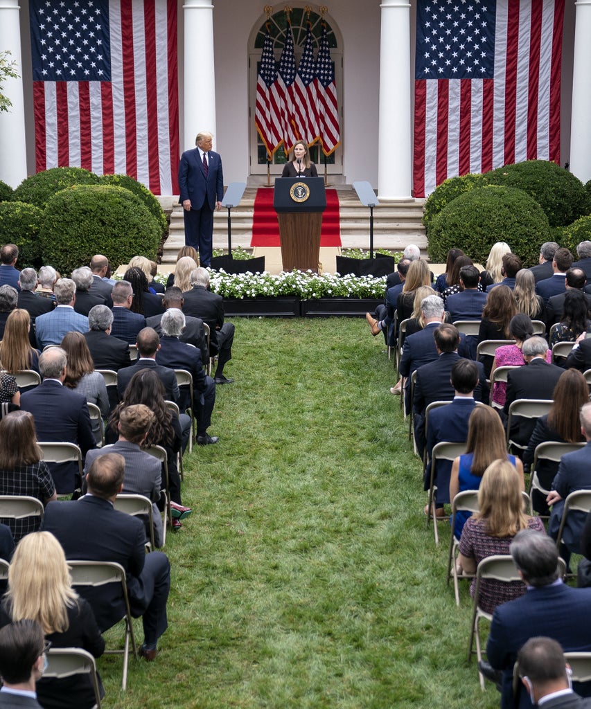 One week after prominent members of the Republican Party gathered at the White House to “celebrate” the nomination of federal judge Amy Coney Barrett to the Supreme Court, it was discovered that the September 26 event was likely a congressional superspreader of the coronavirus. Notable Republicans present at the (largely maskless, not at all distanced) event at the Rose Garden — including Donald and Melania Trump, Utah Sen. Mike Lee, North Carolina Sen. Thom Tillis, Trump senior adviser Hope Hicks, and former Counselor to the President Kellyanne Conway — announced their positive COVID-19 diagnoses on Friday and throughout the weekend.