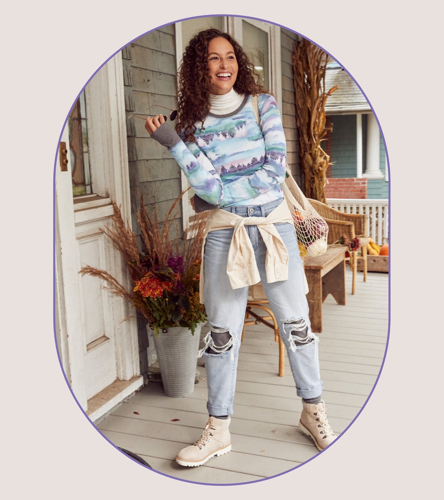 Such incredible versatility is, coincidentally enough, what Cuddl Duds has staked its reputation on with its beloved repertoire of stretchy thermals, ribbed henleys, soft-to-the-touch turtlenecks, and fleece leggings. As proof, we took Cuddl Duds’ layers and, with a few key add-ons, transformed them to suit whatever activity your day might hold — whether that’s a leisurely bike ride, a dinner outdoors, a trip to the farmers’ market, or a walk with your dog. At the core, it’ll feel like you never left your couch — and if that’s not a bit of sartorial magic, then we don’t know what is.