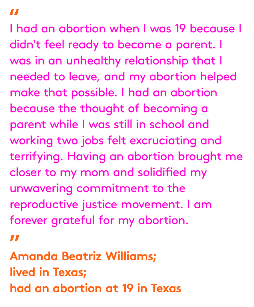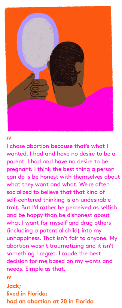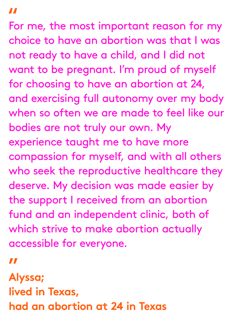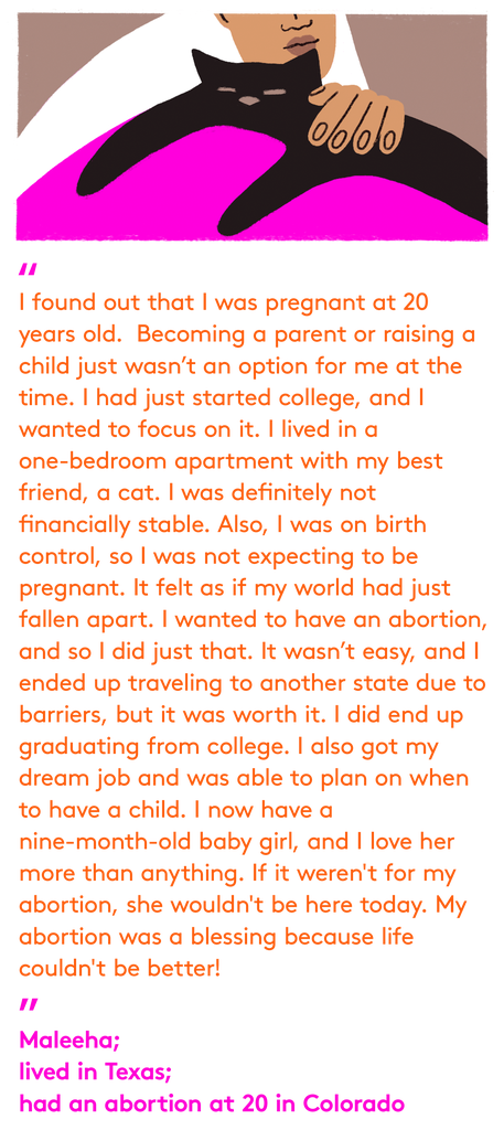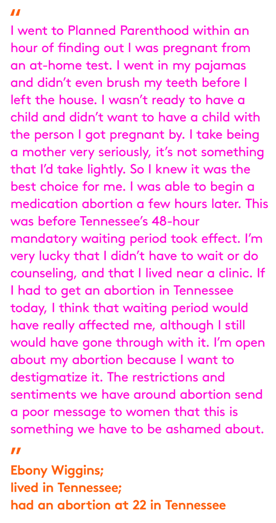That’s one reason we decided to kick off our Access For All package by asking 21 people to explain, in their own words, why they chose to have an abortion. A diversity of abortion stories can help disprove the damaging myths that lead to abortion restrictions, and provide support to people who are seeking abortions, who may feel isolated, Bracey Sherman says.