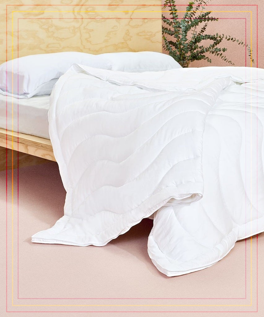 The Buffy Breeze is a eucalyptus-filled, temperature-regulating comforter is designed to help you cool down as you sleep. Featuring a wave stitch pattern and natural resistance to dust, mites, and mold, the top-rated and bestselling comforter is super soft to the touch and just lightweight enough for cuddling. Many sleepers in warmer climates champion this option: “I LOVE the Breeze. It’s light and very breathable. Living in Texas, it is perfect for this climate. I highly suggest this comforter,” with other claiming it’s so perfect they don’t want to get up, “I live in my bed now.”
