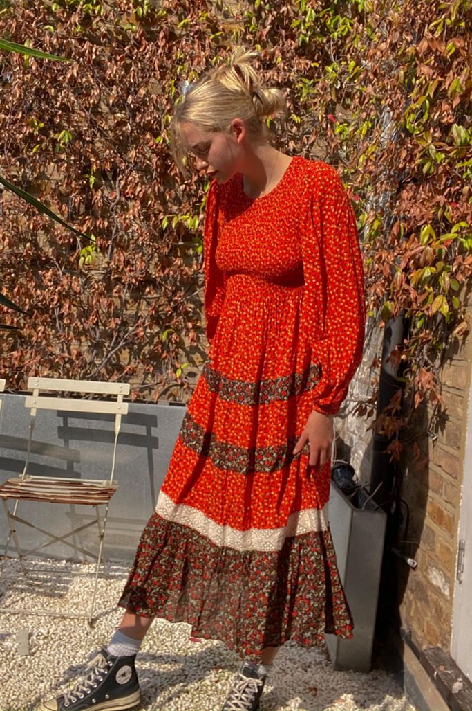 UO London Prairie Midi Dress, $, available at Urban Outfitters