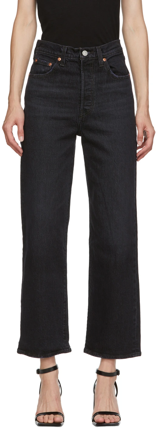 Levis Black Ribcage Straight Ankle Jeans, $, available at SSENSE