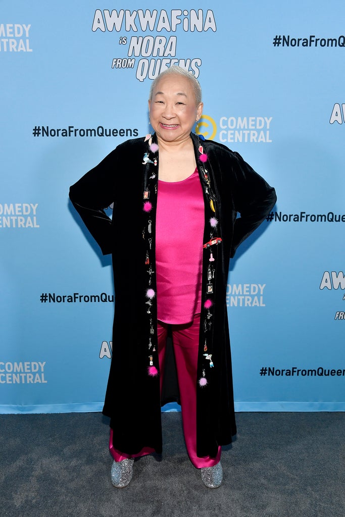 Seattle-born Lori Tan Chinn, who plays the Lin family matriarch in Awkwafina is Nora From Queens, originally considered going into costume design, and would sew her own high fashion pieces in the ’80s. While Chinn’s own infectious, no-filter personality influences her character, Grandma, via her straight-fire — and often F-bomb-laden — improv talents, her equally spicy and resourceful fashion sense also makes a significant impact. On an expletive-filled trip to the bank with granddaughter Nora (Awkwafina), Grandma makes an extra swaggy statement in one of Chinn’s longtime wardrobe staples: a ’70s-era matching leopard print set from the now-shuttered Orhbach’s department store. On a whim, Chinn brought the ensemble on set to show costume designer Staci Greenbaum.