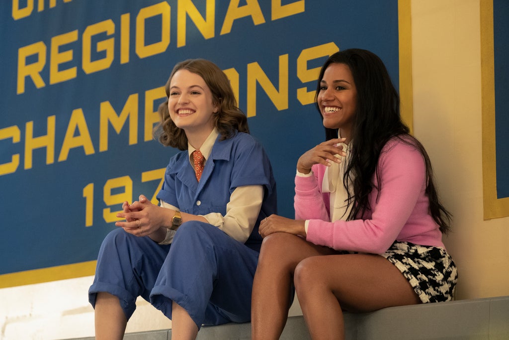 Dee Dee patronizingly assumes the suburban teens need fashion help, but Emma already has a lock on self-expression through her own adorable, eclectic, and throwback-inspired style — even on a budget and in a small town without a Saks Fifth Avenue, much to Barry’s horror. “Emma just loves going to a vintage or a thrift store, which Jo Ellen likes to do in her real life,” says Eyrich, who incorporated Pellman’s own thrifted tweed coat into Emma’s costumes. “So just being able to throw things together and [create] her own style, and just to be her own unique self.”