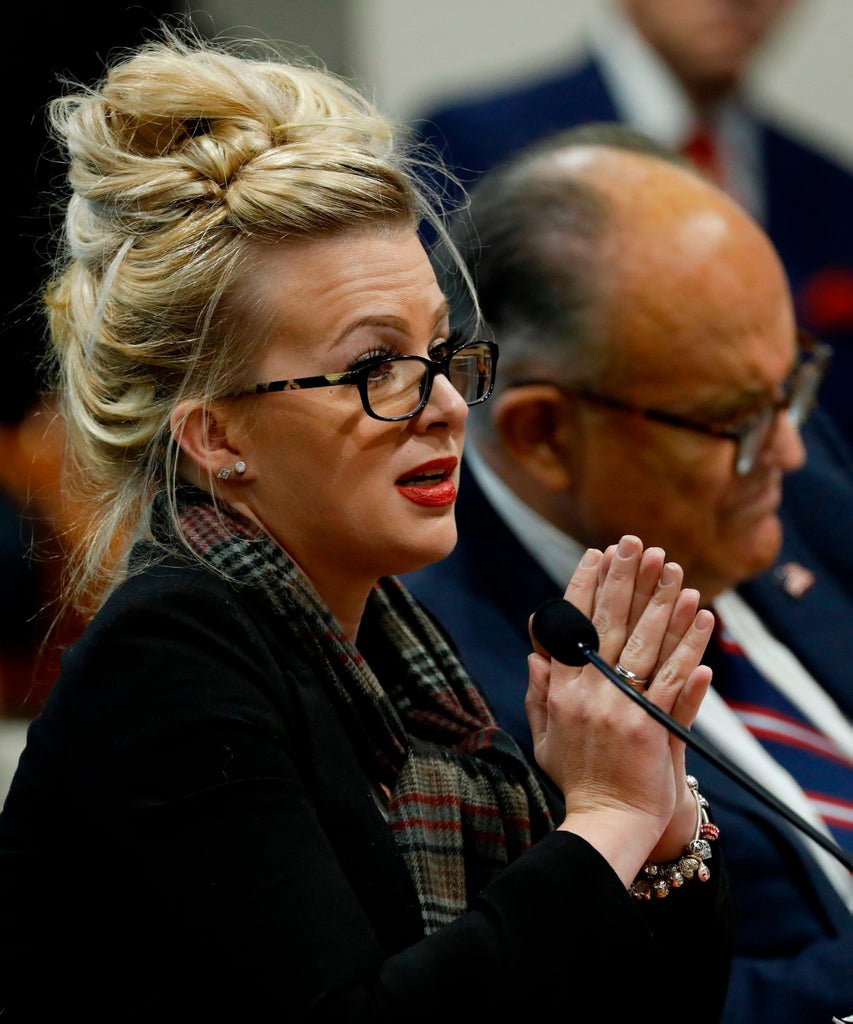 During the hearing, one of Giuliani’s very questionable witnesses — whom he later stated he met earlier that day — asserted the repeated and debunked claims that the election was rife with voter fraud. Melissa Carone, allegedly a contractor for Dominion Voting Systems, confidently and combatively slurred her way through her testimony. Carone claimed poll workers ran the same ballots through the machines “thousands of times,” an allegation refuted by election officials, and was questioned on that point by State Rep. Steven Johnson.