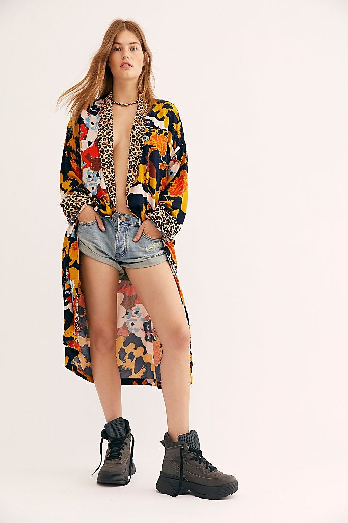 Farm Rio Mixed Scarves Kimono Puffer, $, available at Farm Rio