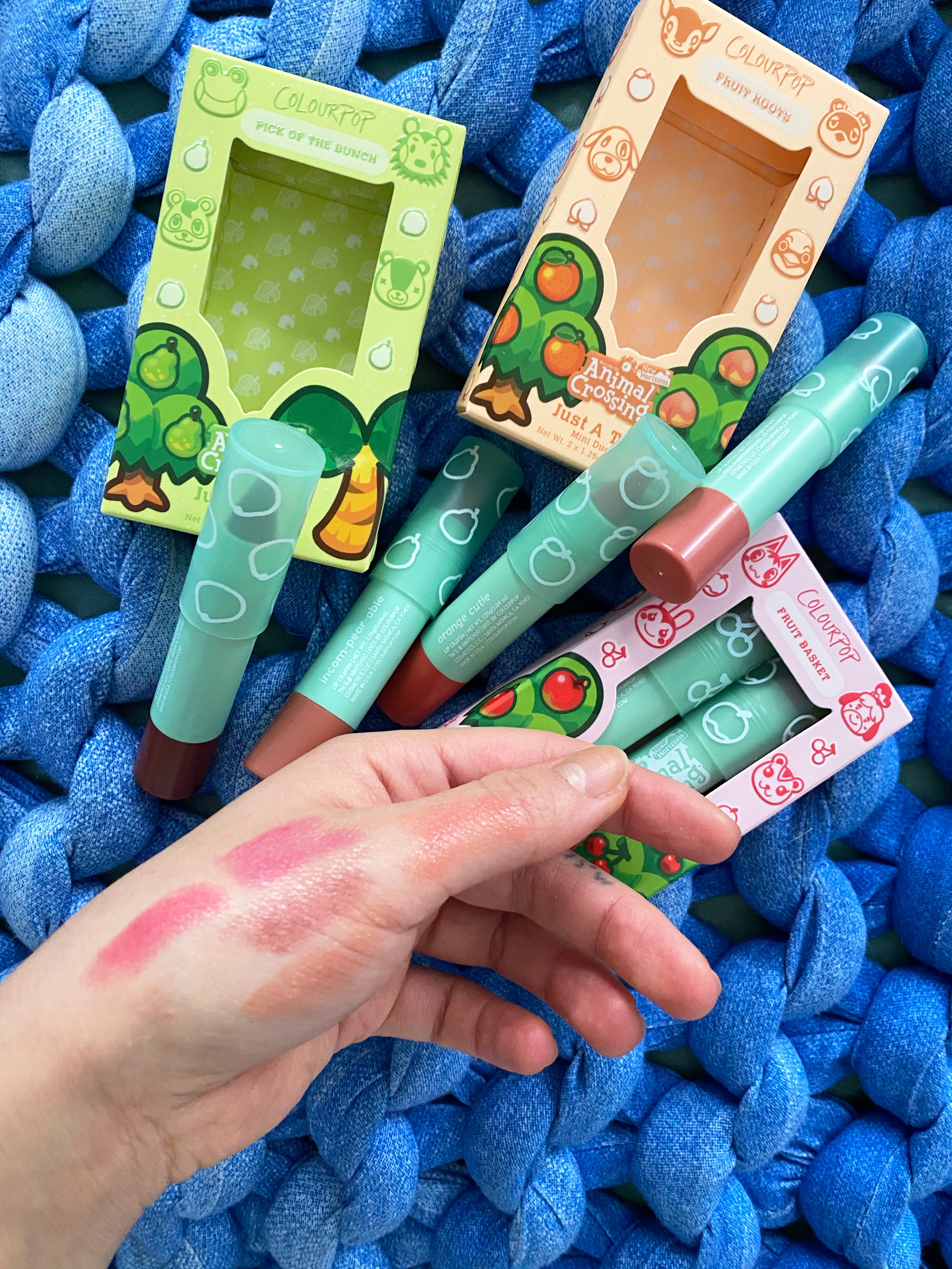 For most of last year, I enjoyed escaping to a private island surrounded by my closest friends (magically regenerating fruit trees and a pink squirrel) in a world untouched by COVID-19. While that escape was totally virtual, I can now thank cult-favorite beauty brand Colourpop for making a little piece of that fantastical joy a reality: Animal Crossing makeup now exists. The just-dropped collab features a collection of joyously AC-themed tinted lip balms, pinky powder blush compacts, glimmering pots of glitter jelly, and whimsical eyeshadow palettes — and I tried them all.