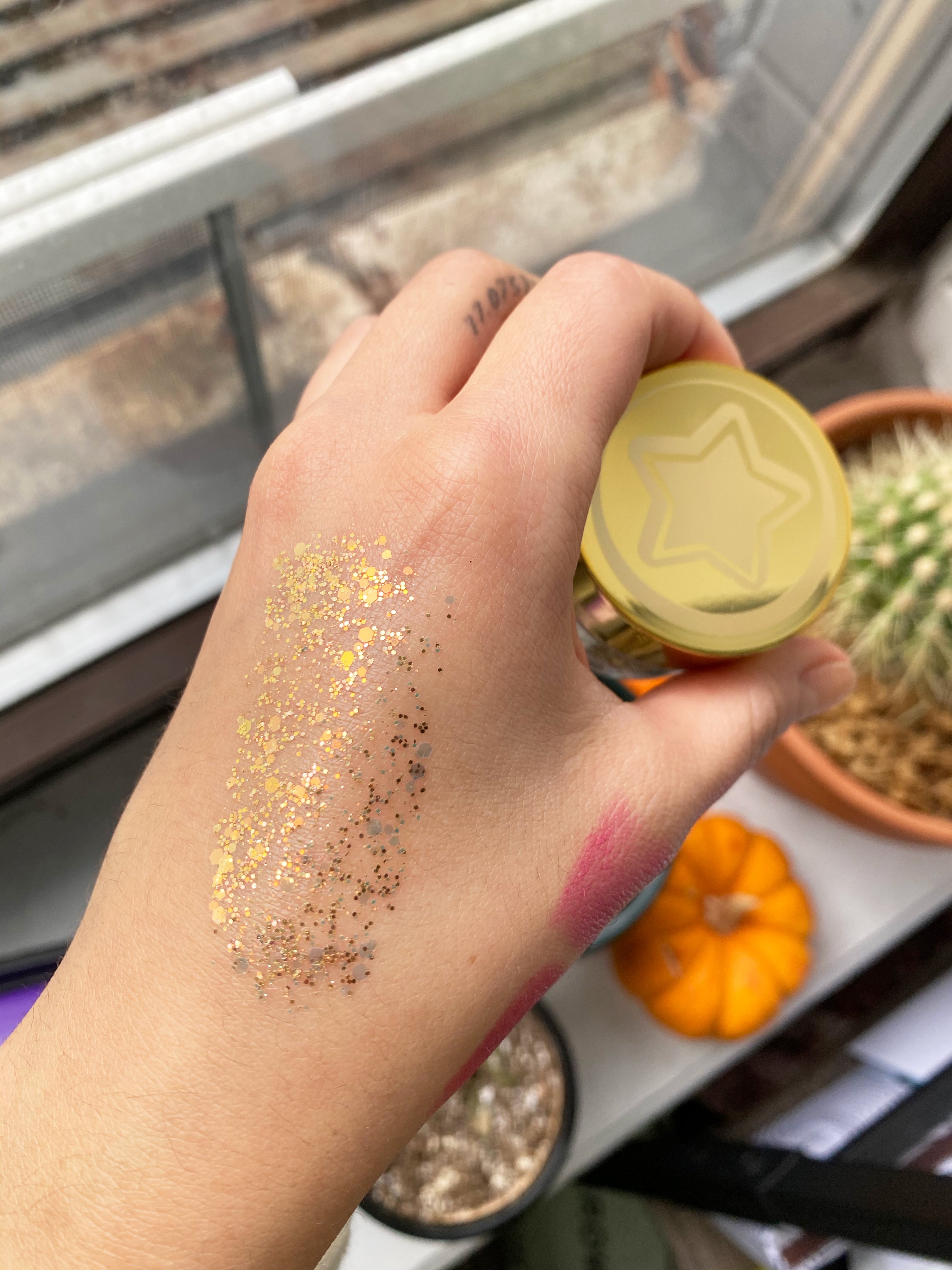 If you live for sparkle, this glitter gel from the collection is a must-buy. It reminds me a lot of the now-discontinued Glitter Gelée from Glossier Play, since it goes on wet but dries down with a crystal-clear finish.