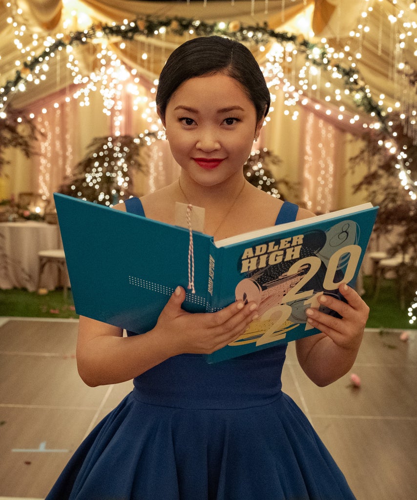 In a bittersweet moment, the final Netflix movie adaptation of Jenny Han’s popular YA book series, To All the Boys: Always and Forever, brings the trilogy to a close. Cue the tears because our wordsmith dreamer, Lara Jean Covey (played by Lana Condor), is about to graduate from Adler High School. She’s at a crossroads: Will she attend Stanford with boyfriend Peter Kavinsky (Noah Centineo)? Or take her own path, perhaps at her “one East Coast option,” to which she applied to demonstrate to sister Margot (Janel Parrish) that she’s not “a failure at adulting.” As she weighs her options, Lara Jean experiences every senior’s rite of passage — and her signature pink-, cyan blue-, and yellow-filled wardrobe evolves as she gets ready to enter the new stage of her life.