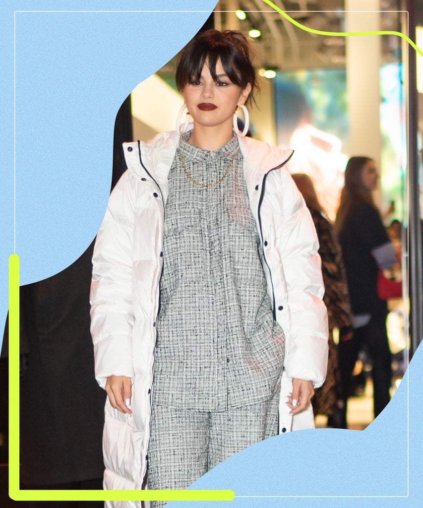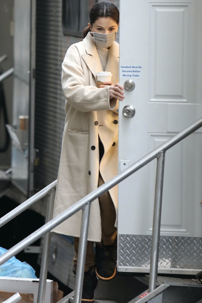 On Tuesday, Selena Gomez was spotted on the set of her new Hulu comedy series Only Murders in the Building, about three true crime-obsessed New Yorkers that are bent on solving a murder (count me in!). In between takes, the singer-actor left her trailer wearing a monochrome look that included a cream-colored, double-breasted coat; a gray, chunky knit; and a khaki suit. On her feet, she wore slippers — but not your run-of-the-mill slippers. These were Louis Vuitton’s “pillow boots,” the likes of which are quickly becoming a favorite among celebrities.
