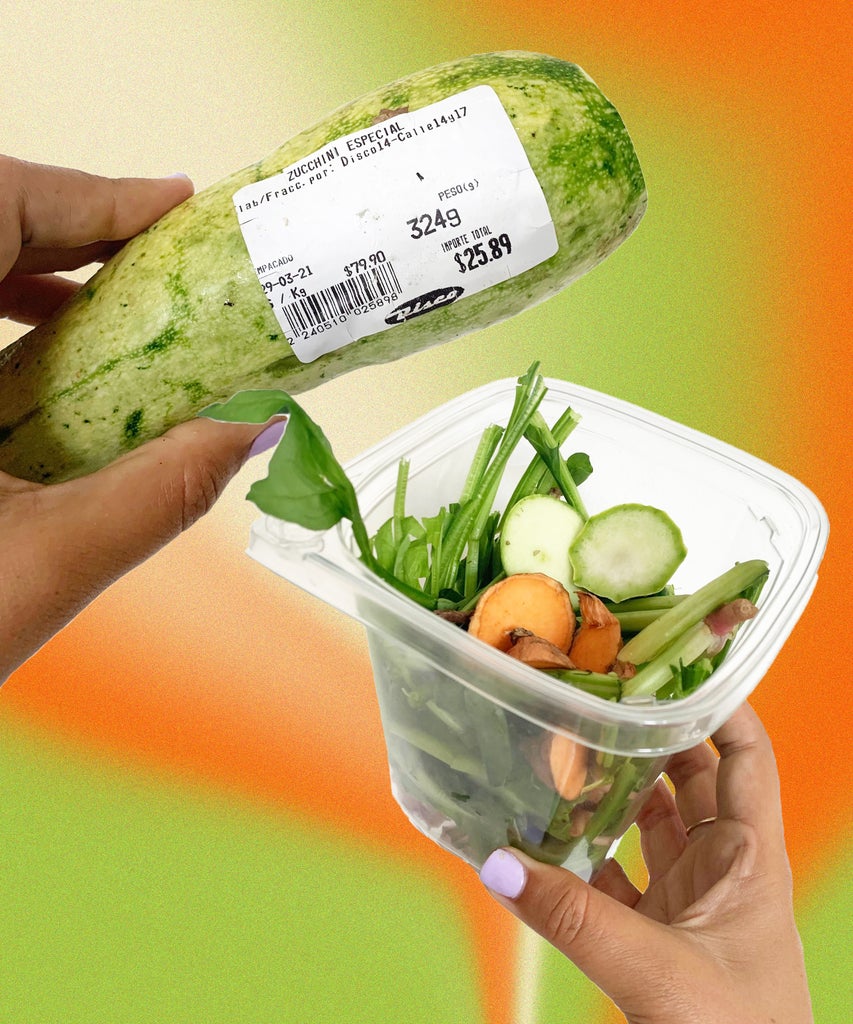 Since I have a proper home base for the first time in five years, I’ve been able to make more sustainable decisions in quarantine. I’m cooking daily for the first time in half a decade and am doing my best to make conscious food purchases. Fortunately, where I live, it’s less expensive to buy produce directly from farmers than at the grocery store. I source my veggies from a local organic farm that delivers boxes of produce weekly. It’s an immense privilege to have access to affordable and healthy produce. But I’ve also found other ways to be sustainable when food shopping: If I have to go to the store for a fruit or veggie the farm didn’t have in stock, I use reusable produce bags instead of single-use plastic bags. If I forget the reusable bags, I just stick the price sticker right on the produce. I also use biodegradable grocery bags as trash bags for non-organic waste. And I get my nuts, seeds, beans, and gluten-free flours in bulk from a refill station where I take my own glass containers.