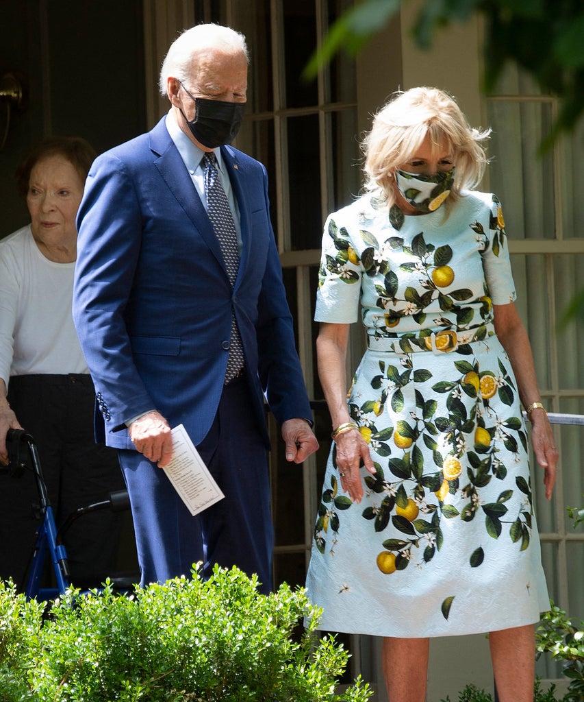 For such a sweet, posed photo, there’s a lot going on here. Some Republicans have already called the Bidens hypocrites for posing without masks, even though the CDC has said it’s safe for fully vaccinated people to gather indoors. And many people have worried about Carter’s health, although Biden told reporters he’s “gotten better.” But when Biden’s head is roughly and alarmingly twice the size of Rosalynn Carter’s, it’s difficult to focus on anything else.