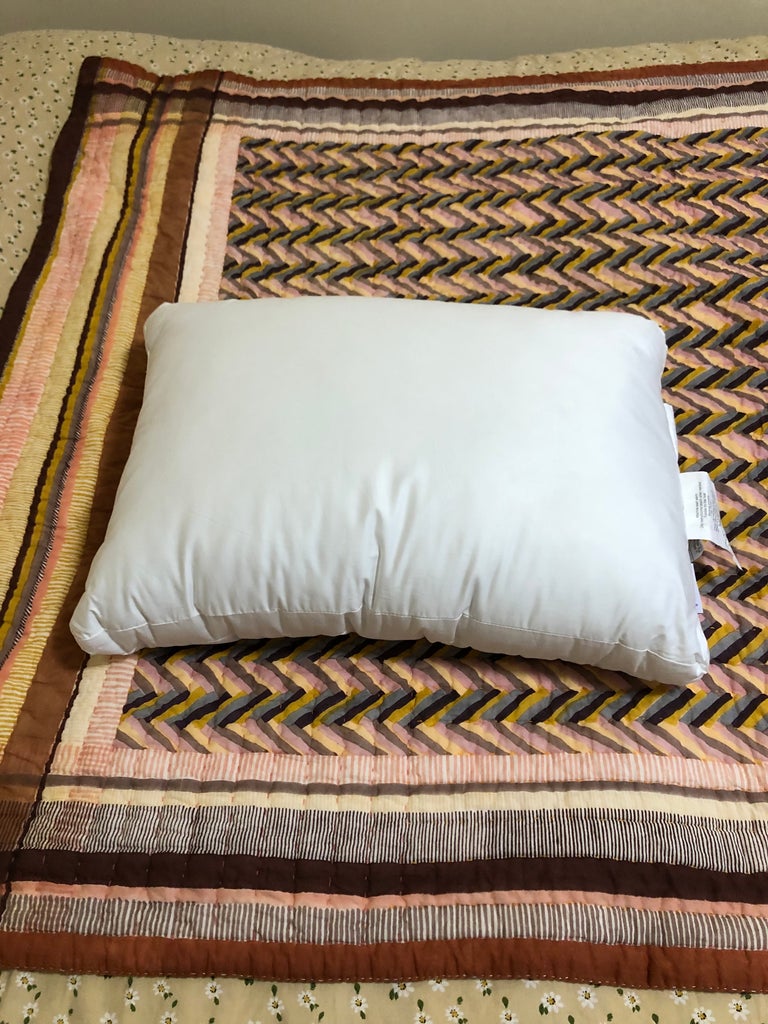 Although it’s not memory foam, I’ll never forget the feeling of when I first sunk my head into it. If I had to choose three words I’d say my first sleep with it was luxe, cool, and — dare I say it? —cloud-like. The cotton casing was crisp and taut from the impressive amount of gel fiber filling stuffed inside. Despite its top-notch squishiness, there is nothing saggy about this pillow. The airiness kept my head cool, calm, and collected all night long. You could easily cry in it for an hour and not feel too suffocated which I, unfortunately, have experienced with many other cushions (do not recommend).