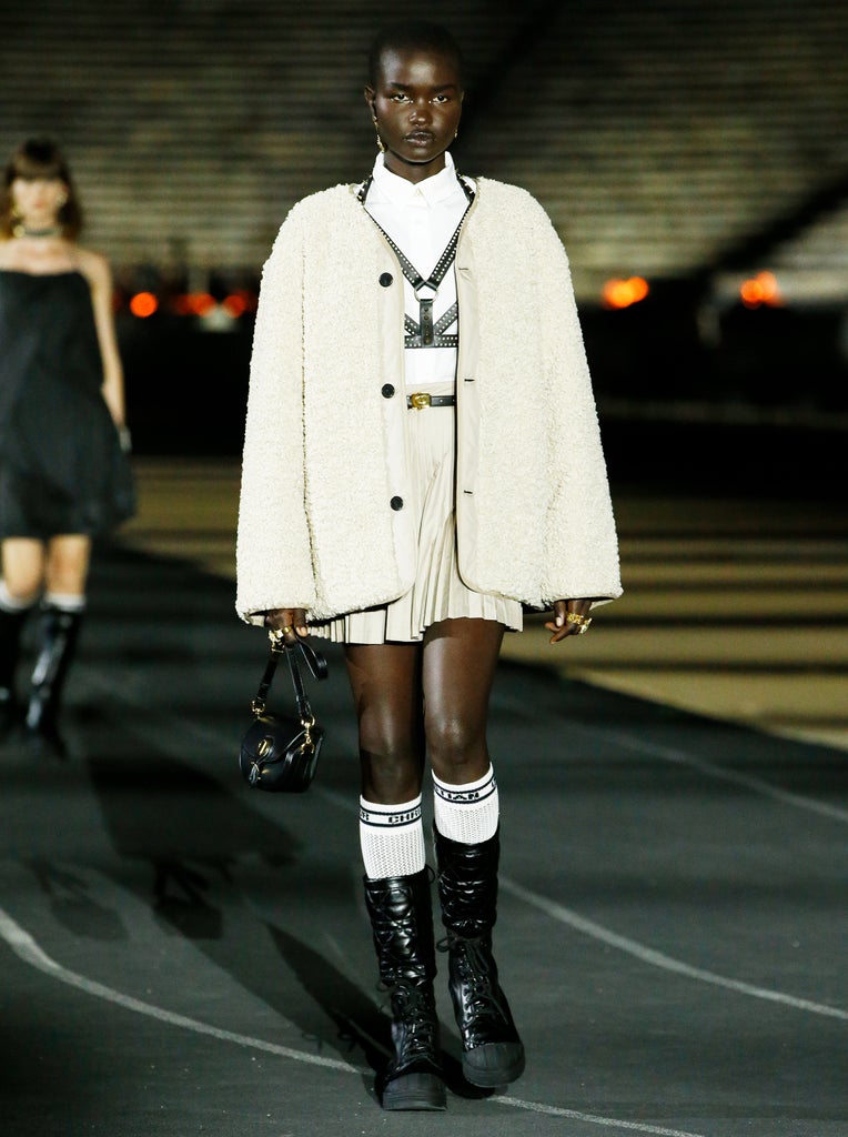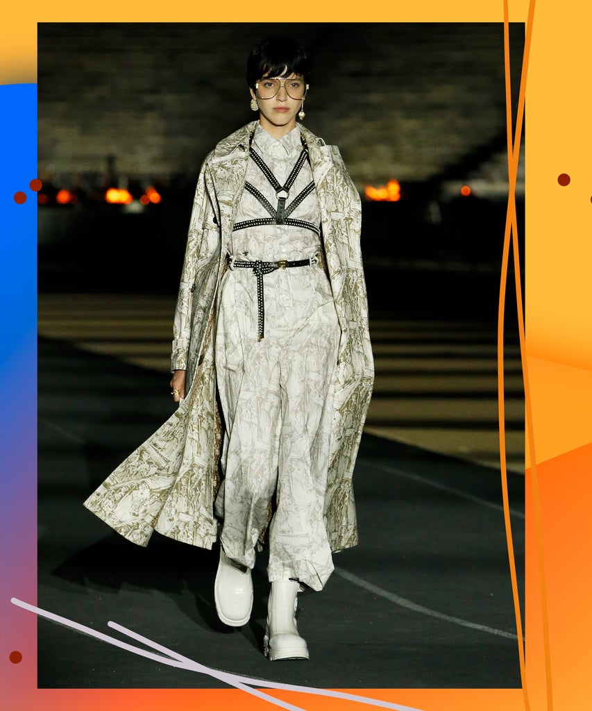 For its 100th anniversary collection, Gucci showed a lineup that included equestrian nods, with leather whips, polo riding hats, knee-high boots, and body harnesses. Creative director Alessandro Michele paired the latter with velvet monochrome suits, corseted dresses, and flowy frocks that could seamlessly go from a conference meeting to a happy hour-turned-dinner. For fall 2021, Dion Lee showed black belted harnesses as crop tops, white asymmetrical bib-like pieces over flowy tops, and mesh cut-out mini dresses with corseting. Meanwhile, Dior’s Cruise 2022 showed a myriad of ladylike dresses and collegiate button-downs and turtlenecks paired with, you guessed, leather harnesses.