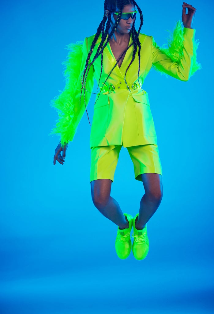 But while fall trends have announced the return of the leather harness, the spring 2022 runways proved that it’s going nowhere. Instead, it’s making its way to workwear now. For proof, look no further than LaPointe’s latest collection inspired. For the spring 2022 presentation, inspired by rave culture, the brand’s designer Sally LaPointe turned a downtown storefront into a club, complete with ear-busting techno and neon lights. The selection included monochrome suits to match, featuring feather details and topped off with harnesses.