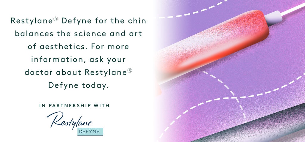 It’s a common misconception that the only way to change your chin is by going under the knife, when in fact fillers — a non-surgical alternative to implants — have the power to “change the shape of the chin,” according to Dr. Cash. “Since the lower part of the face is constantly in motion, it’s important to use a filler that produces dynamic results.” Dr. Cash prefers to treat her patients with RestylaneⓇ Defyne, an FDA-approved filler for use in the chin and designed with XpresHAn Technology™ to create a smooth, injectable gel that helps maintain natural movement and adapt to facial expressions.5,6