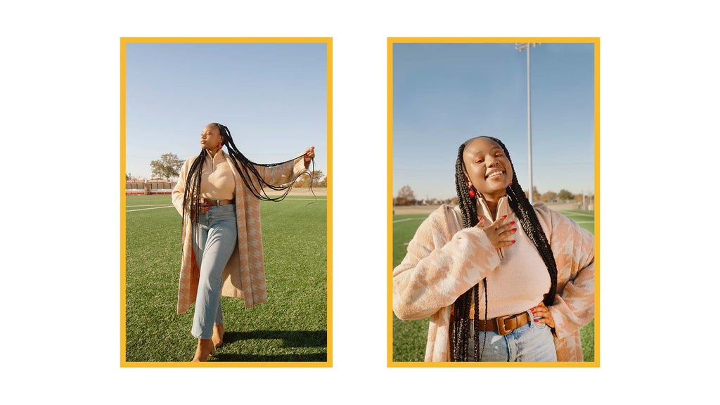 I would describe my personal style as… “The perfect blend between street and sweet. This year, I got into these milkmaid-type of designs. I didn’t know it was called cottagecore! But I also still love my long nails, my gold jewelry, and my sneakers. I’m very feminine, but someone might think, She’s not somebody that I want to play with because she kind of looks like she’s from around the way. I like to mix the two.”