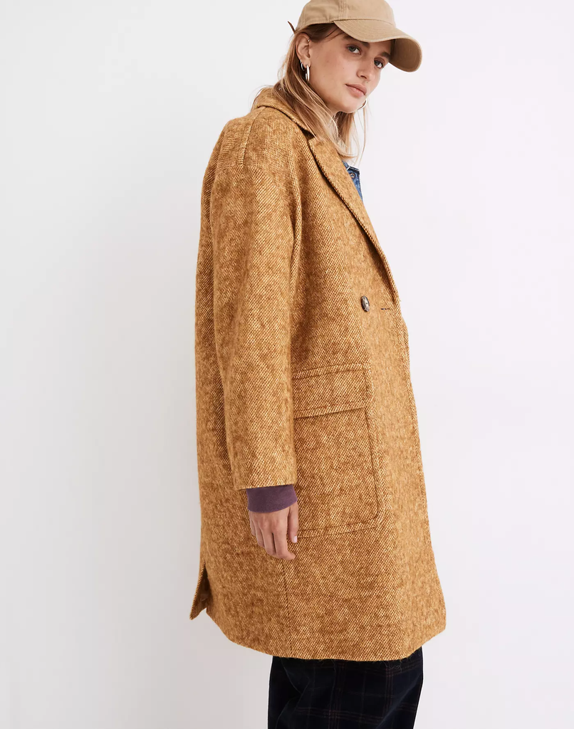 The men’s-inspired wool coat — with the lapels, button closures, mostly neutral color palettes, and that sweet mid-length — is such a mainstay classic that it shouldn’t even be categorized as a “trend.” But, look closely and you’ll see that this year’s wool-ish coats also have refreshed design details like romance sleeves and higher necklines.