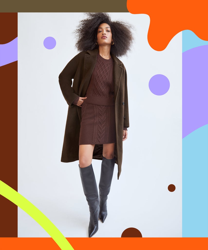 When you break down brown’s status as a neutral, it absolutely makes sense why the woodsy color lends well to almost any kind of outfit scheme. As the “shades of brown” Wikipedia page says, brown is a composite color that’s “produced by combining red, yellow, and black pigments, or by a combination of orange and black.” The painter’s resource website Art in Context takes it even further: “Orange and blue can make brown, and red and green can also make brown. The secondary colors can also be used to add variations to the brown shade created by the three primary colors [red, blue, and yellow]. For example, you can make a brown with underlying purple colors.” While there’s no one way to create brown from the color wheel, it’s clear that it takes a village of colors to achieve certain brown-al tones. It’s no wonder why brown so beautifully pairs with nearly the entire ROYGBIV spectrum. In other words, a brown coat is a no-brainer grab-and-go-with-any-outfit buy you won’t regret.