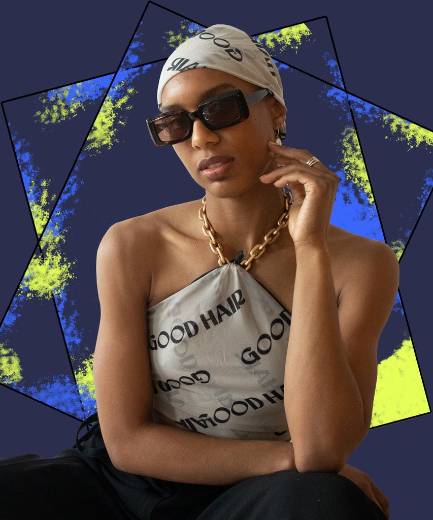 We don’t think this oversized scarf references Chris Rock’s famous documentary. Instead, we assume it’s all about protecting what lives atop our head. Right now, the 100% georgette crepe layer — shown here styled as both a top and a headwrap — is available in both black and antique white.