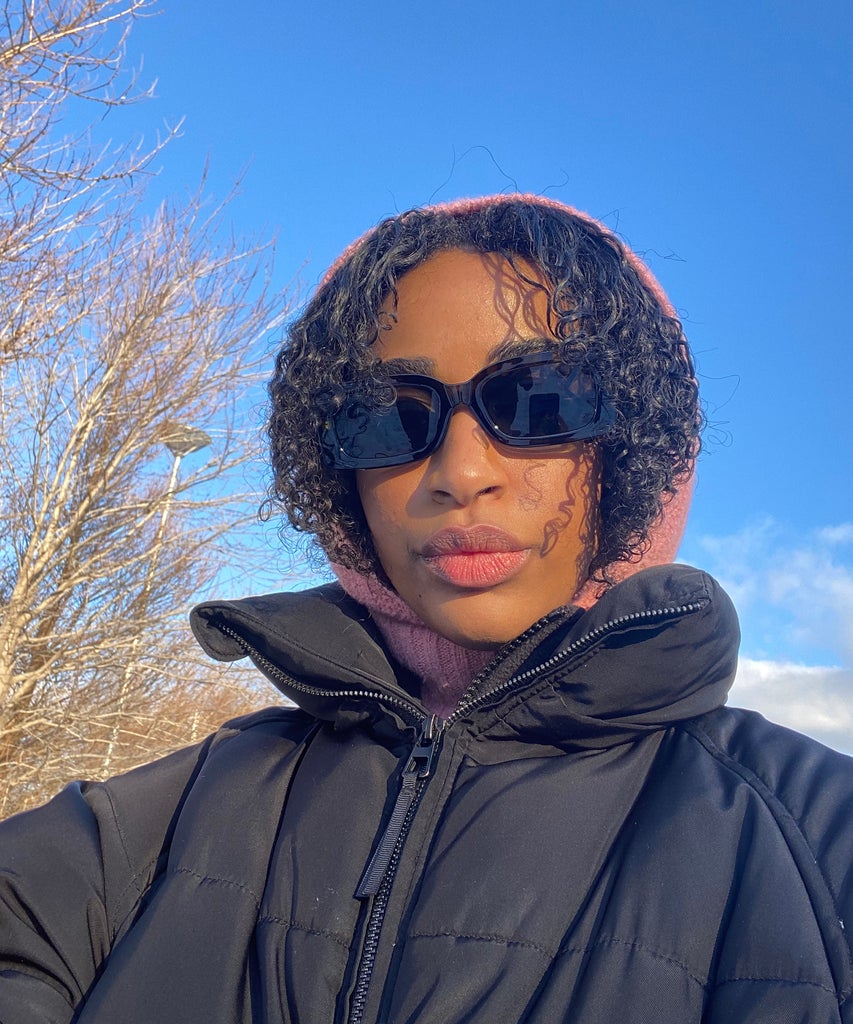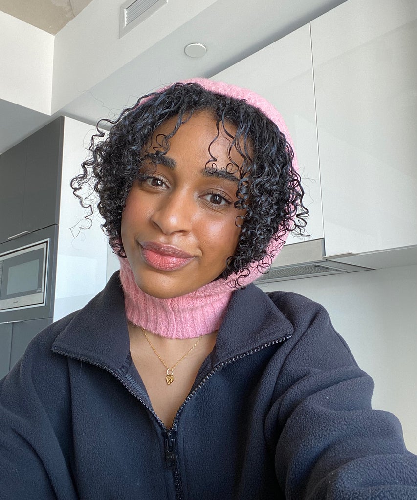 On Instagram, we’re seeing the winter-weather accessory on the feeds of fashion influencers everywhere. Meanwhile, on TikTok, #balaclava has over 132 million views. Style aside, the one thing a lot of these posts have in common is they’re often modeled on people with straight or wavy hair. So, it got me thinking, What’s it like to wear a balaclava as someone with big natural hair? If I put it on, would it mess up my hair the minute I took it off? Would I have to either blow out or slick back my 3C/ 4A curls into a bun in order to pull off this trend? To find out what it’s really like, I enlisted the (now-sold-out) Aritzia Sunday Best Frederick Balaclava in “Guava Pink.”
