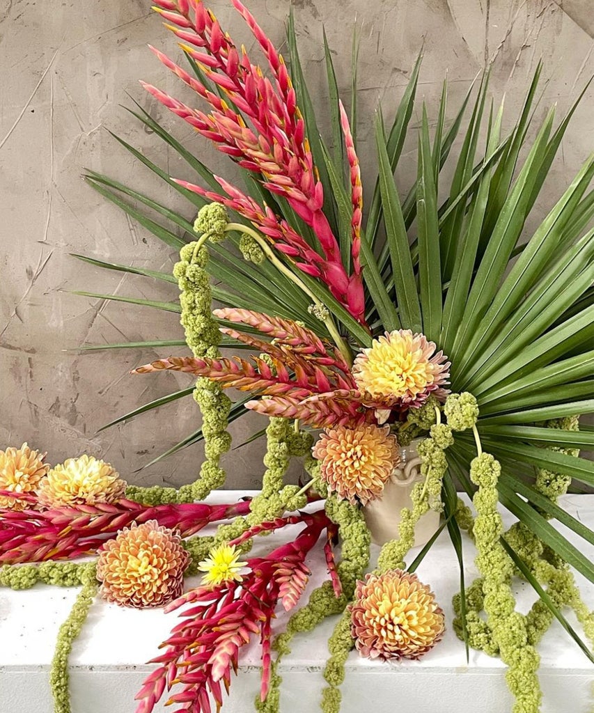 Jaime is one of the growing number of millennial and Gen Z Latinxs opening floral businesses that reinterpret a long-standing tradition with innovation and respect. At Calma, a floral event and installation studio that has worked with brands like Nike and Dior, she blends old-school traditions, like working with the tropical flowers used in her family’s homeland, with modern styles so that these inherited practices “stand the test of time.” In New York, Aurea Sanabria Molaei is inspired by the small but impactful Latinx-owned flower shops she grew up around. In 2015, the Puerto Rican entrepreneur and creative director founded Flower Bodega, a modern floral design and content studio specializing in events, installations, editorial, and experiences, including workshops on flower care and conditioning, selection, color theory, and more.