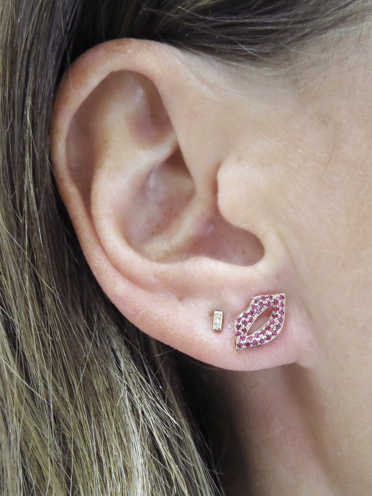 Sydney Evan, Sydney Evans Ruby Lip Rose Gold Stud Earring, $, available at Ylang23