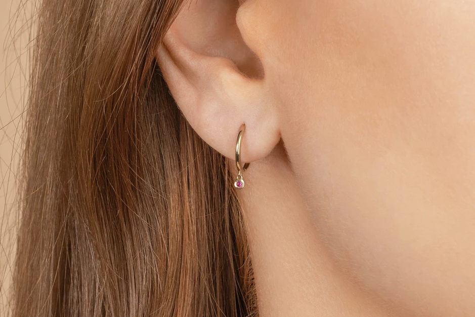 The Last Line Ruby Drop Seamless Hoop Earring, $, available at