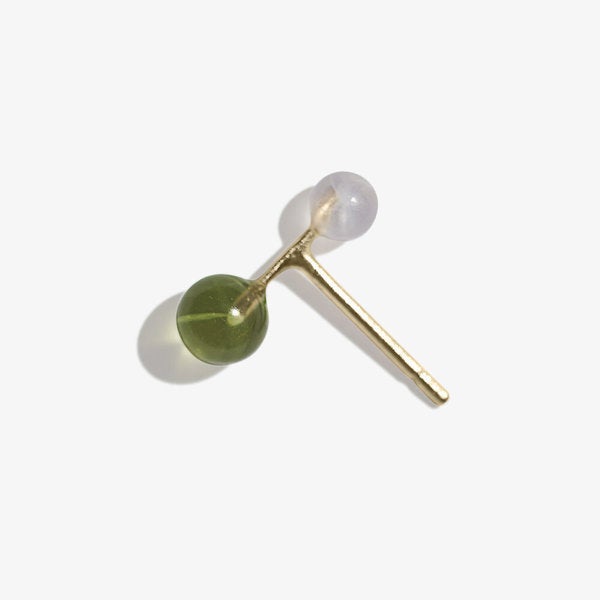 Skomer Studio Ornate Rose Quartz and Peridot Barbell Stud, $, available at Garmentory
